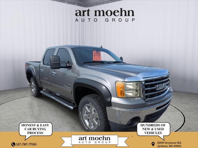 This <b>2013 GMC Sierra 1500 SLE</b> has a Steel Gray Metallic exterior and a Ebony interior color. 86311 miles. Stock Number A1828A. You can connect with us by calling 517-787-7700.<b>Orange Lot: PUBLIC NOTICE - This vehicle will go to auction soon. We are offering it to the public first at wholesale cost! It has not been inspected and is being offered AS-IS.</b> <b>IMPORTANT PACKAGE INFORMATION:</b><h4 class="vc_build_package_name">Power Tech Package ($1 415 value)</h4><ul class="vc_build_package_item_list"><li>Leather-Appointed Front Seat Trim</li><li>Locking Tailgate</li><li>6-Way Power Driver Seat Adjuster</li><li>Dual-Zone Automatic Climate Control</li><li>Vortec 5.3L VVT V8 SFI Flex Fuel Engine</li><li>17" X 7.5" 6-Lug Polished Cast Aluminum Wheels</li><li>Front Halogen Fog Lamps</li><li>Steering Wheel Mounted Audio Controls</li><li>Bluetooth For Phone</li><li>AM/FM Stereo with CD Player and MP3 Playback</li></ul><h4 class="vc_build_package_name">SLE Decor</h4><ul class="vc_build_package_item_list"><li>Leather-Appointed Front Seat Trim</li><li>Premium Cloth Seat Trim</li><li>Power Windows with Driver Express-Down</li><li>Solar-Ray Deep-Tinted Glass</li><li>Driver-Side Manual Lumbar Control Seat Adjuster</li><li>Remote Vehicle Starter Prep Package</li><li>Front 40/20/40 Split-Bench Seat</li><li>Color-Keyed Carpeting with Rubberized Vinyl Floormats</li><li>Body-Colored Bodyside Moldings</li><li>Driver and Front Passenger Illuminated Visor Mirrors</li><li>Heated Power-Adjustable Black Outside Mirrors</li><li>Leather-Wrapped Steering Wheel</li><li>Electronic Autotrac Transfer Case</li><li>6 Speaker Audio System Feature</li><li>Chrome Grille with Chrome Surround</li><li>Heavy-Duty Handling/trailering Suspension Package</li></ul><h4 class="vc_build_package_name">Heavy Duty Cooling Package</h4><ul class="vc_build_package_item_list"><li>Heavy-Duty Air-To-oil External Engine Oil Cooler</li><li>HD Auxiliary External Transmission Oil Cooler</li></ul><h4 class="vc_build_package_name">Heavy-Duty Trailering Package</h4><ul class="vc_build_package_item_list"><li>Heavy-Duty Rear Automatic Locking Differential</li></ul><h4 class="vc_build_feature_name">Comfort</h4><ul class="vc_build_feature_item_list"><li> The power seat controls move the seat forward and back.</li></ul><h4 class="vc_build_feature_name">Convenience</h4><ul class="vc_build_feature_item_list"><li> Cruise control maintains a preset vehicle speed; automatically increasing or decreasing throttle to maintain that speed.</li></ul><h4 class="vc_build_feature_name">Powertrain and Mechanical</h4><ul class="vc_build_feature_item_list"><li> Power is delivered to all four wheels.</li><li> Power is delivered to all four wheels.</li></ul><h4 class="vc_build_feature_name">Technology and Telematics</h4><ul class="vc_build_feature_item_list"><li> The owner of the vehicle has the ability to tailor their emergency S.O.S. and concierge services via the internet.</li></ul><b>ADDITIONAL FEATURES:</b><b>If you decide to speak with one of our knowledgeable associates - please reference this Stock number A1828A. Connect with us now by calling 517-787-7700. </b> <b>HONEST & EASY CAR BUYING</b>Buying a vehicle can be a stressful experience and we understand that. That's why we've built our business on earning your trust and to make you feel financially protected. Through our trusted car-buying process you'll have access to full service reports and vehicle history checks. Furthermore we are a KBB brand top-rated dealer. A Cargurus 4-1/2 star dealer and we have over 1 000 Google reviews! Choose Art Moehn Auto Group today and come see how easy buying a car can be.