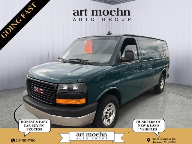This <b>2018 GMC Savana Cargo Van </b> has a Special Paint exterior and a Medium Pewter interior color. 89812 miles. Stock Number A1801. You can connect with us by calling 517-787-7700.<b>Orange Lot: PUBLIC NOTICE - This vehicle will go to auction soon. We are offering it to the public first at wholesale cost! It has not been inspected and is being offered AS-IS.</b> <b>IMPORTANT PACKAGE INFORMATION:</b><h4 class="vc_build_package_name">Driver Convenience Package ($395 value)</h4><ul class="vc_build_package_item_list"><li>Cruise Control</li><li>Tilt-Wheel</li></ul><h4 class="vc_build_package_name">Preferred Equipment Group 1WT</h4><ul class="vc_build_package_item_list"><li>Front Reclining High-Back Bucket Seats</li><li>8 600 lbs (3 901 Kg) GVWR</li><li>3.42 Rear Axle Ratio</li><li>4.3L V6 DI VVT Engine</li><li>Electronic 8-Speed Automatic Transmission with Overdrive</li><li>16" X 6.5" Steel Wheels</li><li>Front LT245/75R16E AS BW Tires</li><li>Rear LT245/75R16E AS BW Tires</li></ul><h4 class="vc_build_feature_name">Convenience</h4><ul class="vc_build_feature_item_list"><li> Cruise control maintains a preset vehicle speed; automatically increasing or decreasing throttle to maintain that speed.</li></ul><h4 class="vc_build_feature_name">Powertrain and Mechanical</h4><ul class="vc_build_feature_item_list"><li> Variable valve control allows the lift duration and/or timing of the intake or exhaust valves to be altered while the engine is in operation.</li></ul><h4 class="vc_build_feature_name">Safety and Security</h4><ul class="vc_build_feature_item_list"><li> The vehicle is equipped with a camera that displays an image of the area behind the vehicle on an interior display.</li></ul><h4 class="vc_build_feature_name">Technology and Telematics</h4><ul class="vc_build_feature_item_list"><li> Mobile devices can wirelessly connect to the internet through the vehicle's private mobile network.</li><li> Mobile devices can wirelessly connect to the internet through the vehicle's private mobile network.</li></ul><b>ADDITIONAL FEATURES:</b><b>If you decide to speak with one of our knowledgeable associates - please reference this Stock number A1801. Connect with us now by calling 517-787-7700. </b> <b>HONEST & EASY CAR BUYING</b>Buying a vehicle can be a stressful experience and we understand that. That's why we've built our business on earning your trust and to make you feel financially protected. Through our trusted car-buying process you'll have access to full service reports and vehicle history checks. Furthermore we are a KBB brand top-rated dealer. A Cargurus 4-1/2 star dealer and we have over 1 000 Google reviews! Choose Art Moehn Auto Group today and come see how easy buying a car can be.