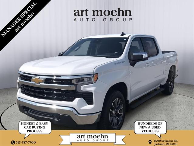 This <b>2022 Chevrolet Silverado 1500 LT</b> has a Summit White exterior and a Jet Black interior color. 51381 miles. Stock Number A1816. You can connect with us by calling 517-787-7700. <b>IMPORTANT PACKAGE INFORMATION:</b><h4 class="vc_build_package_name">Preferred Equipment Group 2FL</h4><ul class="vc_build_package_item_list"><li>SiriusXM with 360L</li><li>Rear 60/40 Folding Bench Seat (folds Up)</li><li>Power Front Windows with Passenger Express Down</li><li>Power Rear Windows with Express Down</li><li>Deep-Tinted Glass</li><li>Power Front Windows with Driver Express Up/down</li><li>40/20/40 Front Split-Bench Seat</li><li>Color-Keyed Carpeting Floor Covering</li><li>Bluetooth For Phone</li><li>Compass</li><li>Chrome Mirror Caps</li><li>Auto-Locking Rear Differential</li><li>Electronic Cruise Control</li><li>Electrical Steering Column Lock</li><li>Single-Speed Transfer Case</li><li>Convenience Package</li><li>All-Star Edition</li><li>Chevy Safety Assist</li><li>Wireless Phone Projection</li><li>Cloth Seat Trim</li><li>12.3" Multicolor Reconfigurable Digital Display</li><li>OnStar and Chevrolet Connected Services Capable</li><li>LED Cargo Area Lighting</li><li>Steering Wheel Audio Controls</li><li>HD Rear Vision Camera</li><li>Front Frame-Mounted Black Recovery Hooks</li><li>Trailering Package</li></ul><h4 class="vc_build_feature_name">Safety and Security</h4><ul class="vc_build_feature_item_list"><li> The vehicle is equipped with a system that senses and then prepares the vehicle and/or occupants for an impending forward collision.</li><li> The vehicle constantly monitors the roadway in front of the vehicle and identifies and tracks pedestrians on an interior display. If the system determines a likely impact it will automatically take preventative steps to avoid hitting the pedestrian.</li></ul><h4 class="vc_build_feature_name">Technology and Telematics</h4><ul class="vc_build_feature_item_list"><li> Apple CarPlay/Android Auto smart device wireless mirroring</li><li> Wireless Apple CarPlay/Wireless Android Auto smart device wireless mirroring</li><li> Mobile devices can wirelessly connect to the internet through the vehicle's private mobile network.</li></ul><b>ADDITIONAL FEATURES:</b><b>If you decide to speak with one of our knowledgeable associates - please reference this Stock number A1816. Connect with us now by calling 517-787-7700.</b>This Chevrolet has gone through our service process - You can request the full inspection at anytime. <b>HONEST & EASY CAR BUYING</b>Buying a vehicle can be a stressful experience and we understand that. That's why we've built our business on earning your trust and to make you feel financially protected. Through our trusted car-buying process you'll have access to full service reports and vehicle history checks. Furthermore we are a KBB brand top-rated dealer. A Cargurus 4-1/2 star dealer and we have over 1 000 Google reviews! Choose Art Moehn Auto Group today and come see how easy buying a car can be.