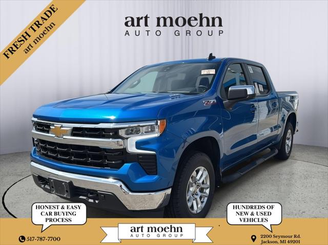 This <b>2023 Chevrolet Silverado 1500 LT</b> has a Glacier Blue Metallic exterior and a Jet Black interior color. 56339 miles. Stock Number A1842. You can connect with us by calling 517-787-7700. <b>IMPORTANT PACKAGE INFORMATION:</b><b>ADDITIONAL FEATURES:</b><b>If you decide to speak with one of our knowledgeable associates - please reference this Stock number A1842. Connect with us now by calling 517-787-7700.</b>This Chevrolet has gone through our service process - You can request the full inspection at anytime. <b>HONEST & EASY CAR BUYING</b>Buying a vehicle can be a stressful experience and we understand that. That's why we've built our business on earning your trust and to make you feel financially protected. Through our trusted car-buying process you'll have access to full service reports and vehicle history checks. Furthermore we are a KBB brand top-rated dealer. A Cargurus 4-1/2 star dealer and we have over 1 000 Google reviews! Choose Art Moehn Auto Group today and come see how easy buying a car can be.